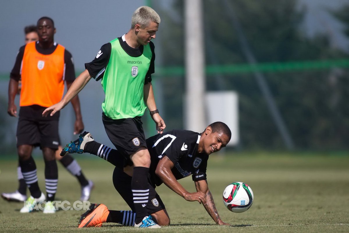 Μετά την πρωινή λειτουργική δύναμη και την τακτική, στην απογευματινή προπόνηση που πραγματοποιήθηκε στην Τούμπα, σειρά είχαν το transition game και η φυσική κατάσταση μέσα από το ποδόσφαιρο. Οι παίκτες του Δικεφάλου κλήθηκαν ν’ ανεβάσουν ταχύτητα για να βγουν στην αντεπίθεση ή να την αποτρέψουν αντίστοιχα. Ο Στέλιος Μαλεζάς αποχώρησε από την προπόνηση με πόνο στους πλάγιους κοιλιακούς εξαιτίας χτυπήματος που δέχτηκε πάνω στη φάση, αλλά η κατάστασή του δεν εμπνέει ανησυχία.