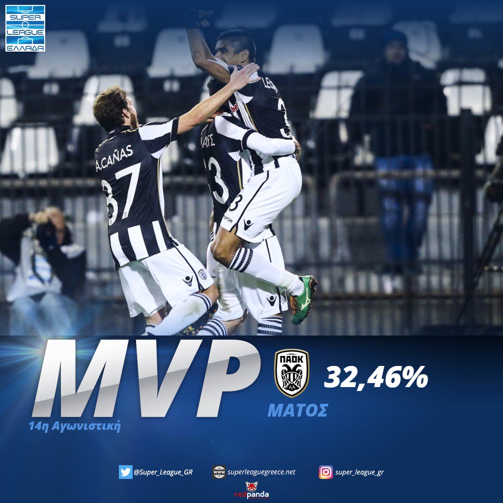 Ο Μάτος ήταν ο μεγάλος νικητής της ψηφοφορίας που διοργανώνει η Nova, η Super League και ο ΠΣΑΠ για τον πολυτιμότερο ποδοσφαιριστή της 14ης αγωνιστικής συγκεντρώνοντας το 32,46% των ψήφων, κοινού και επιτροπής συνολικά, και άφησε στην δεύτερη θέση τον Κλέσιο του Παναιτωλικού και στην τρίτη τον Βασιλακάκη της Ξάνθης.