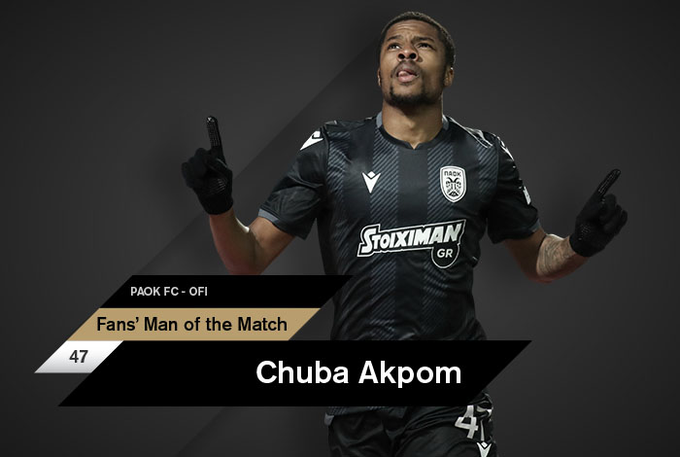 Στην ψηφοφορία για τον Fans’ Man of the Match της αναμέτρησης μέσω paokfc.gr και PAOK FC Official App ο Ak47 συγκέντρωσε το 55,45% των ψήφων του κοινού και πήρε το βραβείο.Στη δεύτερη θέση έμεινε ο Λάζαρος Λάμπρου , ο οποίος βρήκε δίχτυα με όμορφη κεφαλιά και ταλαιπώρησε ιδιαίτερα την αντίπαλη άμυνα, ενώ το βάθρο συμπλήρωσε ο Δημήτρης Λημνιός ο οποίος μπήκε σαν αλλαγή στο ημίχρονο και έδωσε πνοή στην ομάδα.