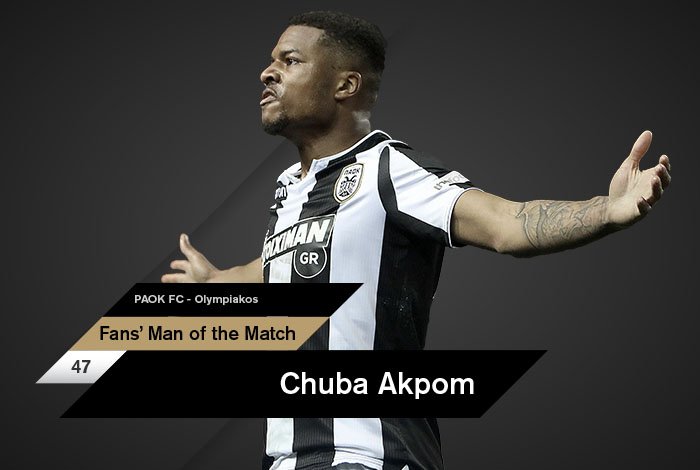 Στην ψηφοφορία για τον Fans’ Man of the Match του αγώνα ο Άκπομ συγκέντρωσε το 49,14% των ψήφων του κοινού και κατέκτησε τον ατομικό τίτλο.Στη δεύτερη θέση έμεινε ο Αντελίνο Βιεϊρίνια . Ο αρχηγός ήταν αυτός που άνοιξε το δρόμο για τον θρίαμβο της ομάδας του με το γκολ μόλις στο τρίτο λεπτό του αγώνα, ενώ είχε συνολικά μία ηγετική παρουσία στο γήπεδο.
