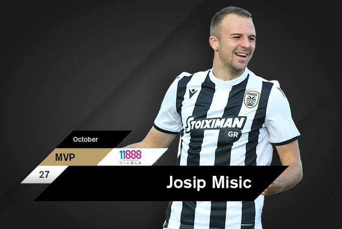 Στην ψηφοφορία του paokfc.gr και του PAOK FC Official App για τον 11888 MVP Οκτωβρίου ο μέσος του Δικεφάλου συγκέντρωσε το 60,69% των ψήφων και κατέκτησε τον ατομικό τίτλο για δεύτερο σερί μήνα, με την επιτυχία του τον Σεπτέμβριο.Στη δεύτερη θέση ο Δημήτρης Λημνιός , που βρίσκεται σε εξαιρετική κατάσταση και το βάθρο συμπλήρωσε ο Δημήτρης Γιαννούλης που συνεχίζει ακάθεκτος να αποδίδει εξαιρετικά στο αριστερό άκρο της άμυνας του Δικεφάλου.