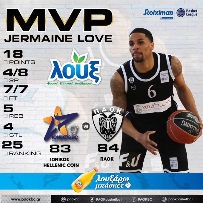 Μία ιστορική επίδοση πέτυχε ο Jermaine Love με την εντυπωσιακή ευστοχία του στις βολές και με την ολοκλήρωση της κανονικής διάρκειας του πρωταθλήματος. Ο Αμερικανός γκαρντ του ΠΑΟΚ αστόχησε μόλις σε 5 από τις 95 βολές που εκτέλεσε στους 22 αγώνες που έπαιξε στην κανονική περίοδο και με το εντυπωσιακό ποσοστό 94,7%, ήταν ο πιο εύστοχος παίκτης της Stoiximan Basket League.Η επίδοση του Love που άγγιξε την τελειότητα, έχει ιστορική αξία δεδομένου ότι είναι η δεύτερη καλύτερη στην ιστορία του πρωταθλήματος μπάσκετ, αλλά και η κορυφαία στην ιστορία του ΠΑΟΚ. Είτε η καταμέτρηση αφορά την Basket League (1992-93 και μετά), είτε την Α1 (από την σεζόν 1986-87 και μετά), το 94,7% με το οποίο σούταρε ο Jermaine Love στις βολές είναι το δεύτερο καλύτερο ποσοστό ευστοχία των τελευταίων 35 χρόνων!