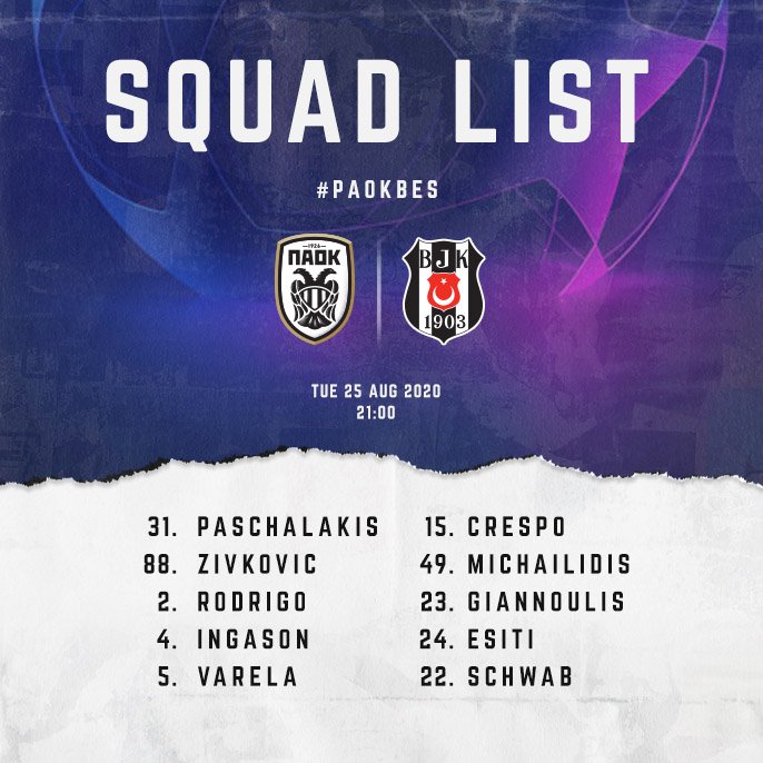 Απ: PAOK - Besiktas 25/8, 21:00 OPENTV (2nd Qualifying Round Champ.League)