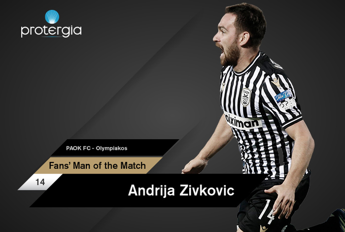 Στην ψηφοφορία για τον Protergia Fans’ Man of the Match ο Σέρβος συγκέντρωσε το 66,63% των ψήφων του κοινού και κατέκτησε τον ατομικό τίτλο, διαλύοντας τον ανταγωνισμό.Ο μόνος συμπαίκτης του που κατάφερε να συγκεντρώσει διψήφιο ποσοστό ήταν ο Ραχμάν Μπάμπα . Ο Γκανέζος αριστερός μπακ έκανε την καλύτερή του εμφάνιση με τη φανέλα του Δικεφάλου, όντας κομβικός σε άμυνα και επίθεση.