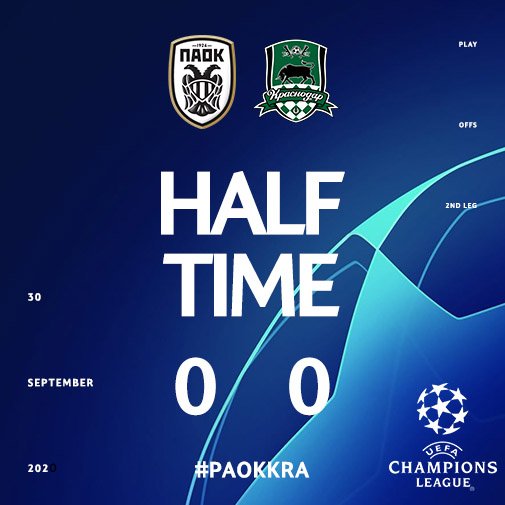 Απ: PAOK - Krasnodar 30/9, 22:00 Cosmotesports1HD (Play offs Champ.Leag)