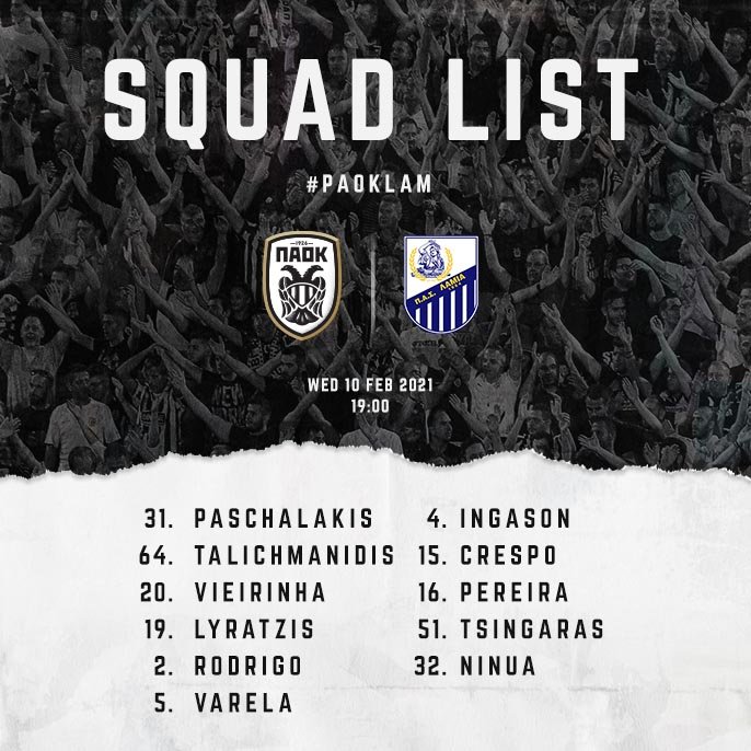 Απ: ΠΑΟΚ - Λαμία 10/2, 19:00 Cosmotesports2HD (Προημιτελικά Κυπέλλου Ελλάδος)