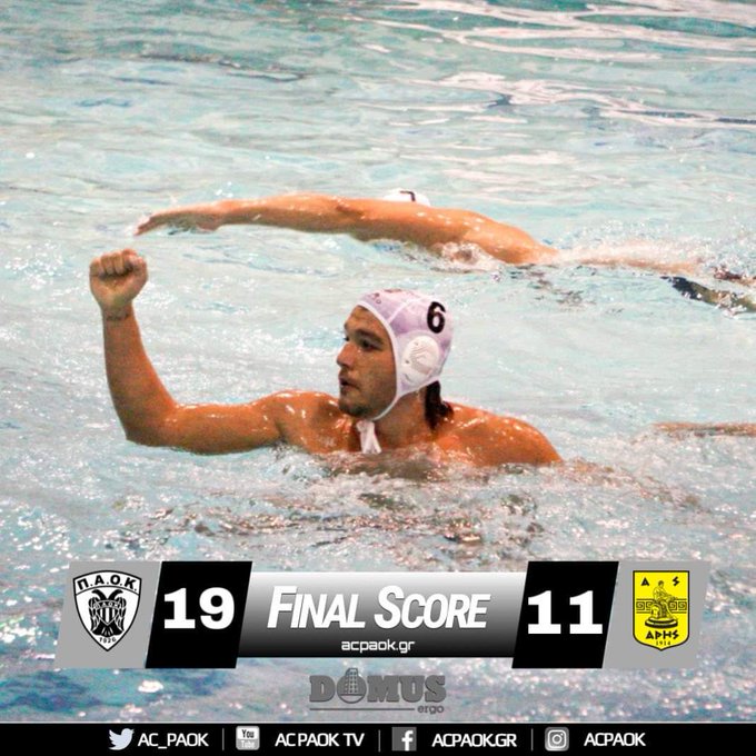Ο ΠΑΟΚ Domus Ergo υποδέχθηκε στο Ποσειδώνιο Κολυμβητήριο τον Απόλλων Σμύρνης, από τον οποίο και γνώρισε  την ήττα με 11-16, στο πλαίσιο της 6ης αγωνιστικής της Α1 Υδατοσφαίρισης ανδρών.
