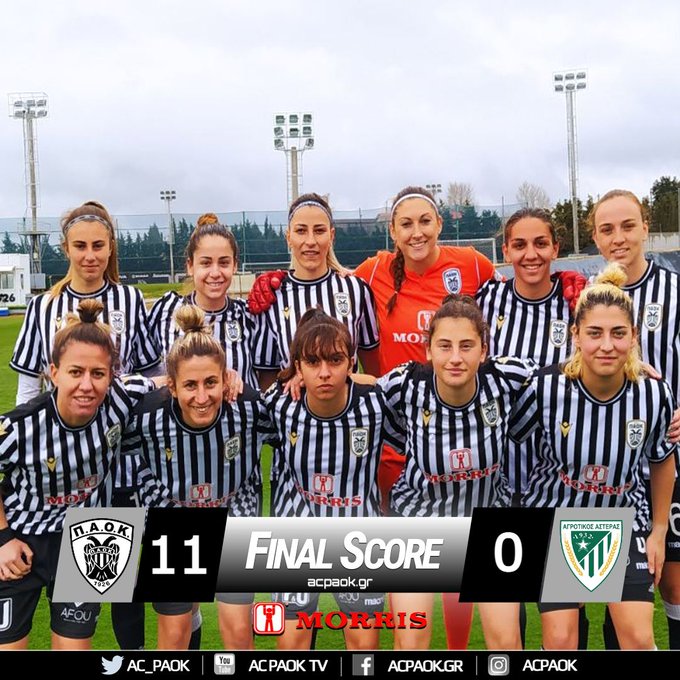 Για τη 13η αγωνιστική της Women's Football League, o ΠΑΟΚ Morris υποδέχθηκε στο Προπονητικό Κέντρο της Ν. Μεσημβρίας το απόγευμα της Κυριακής 6 Μαρτίου τον Αγροτικό Αστέρα Ευόσμου, του οποίου και επικράτησε με 11-0.