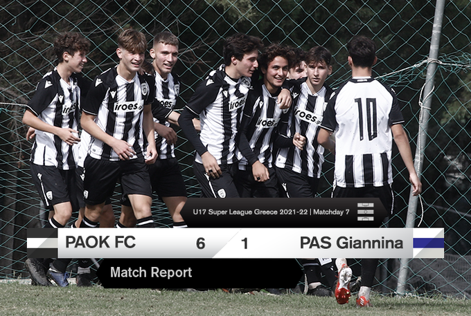 Με ποδόσφαιρο κατοχής και κυριαρχική διάθεση εξ αρχής, η Κ17 κέρδισε με ευρύ σκορ άλλο ένα παιχνίδι. Η ομάδα των Τσιαπακίδη και Χάγκαν πέτυχε την έκτη συνεχόμενη νίκη της (σε επτά ματς) για το πρωτάθλημα της Super League, αυτή τη φορά επί του ΠΑΣ Γιάννινα στη Σουρωτή, τον οποίο και κέρδισε 6-1.
