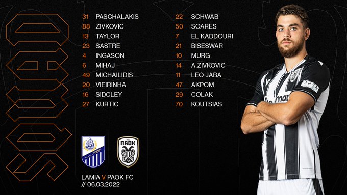 Απ: Λαμία - ΠΑΟΚ 6/3- 19:00 (26η Αγων. Sup.League)