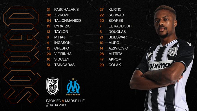Απ: PAOK - Marseille 14/4- 22:00 Cosports2HD (Round of 8 Europa Conference League)