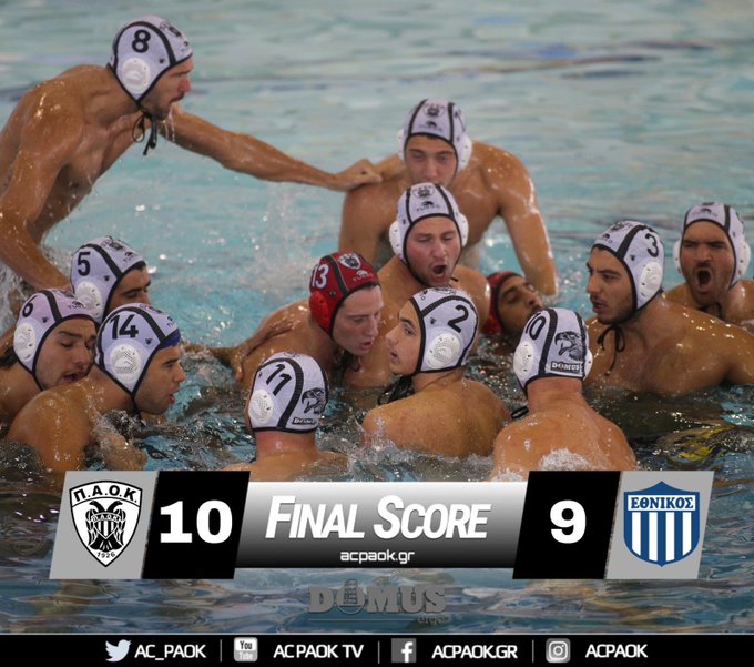 Το 1-0 στην σειρά των παιχνιδιών κόντρα στον Εθνικό Πειραιώς έκανε ο ΠΑΟΚ Domus Ergo, επικρατώντας στο Ποσειδώνιο Κολυμβητήριο με 10-9.
