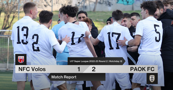 Προχώρησε με νέα νίκη η Κ17, η οποία επικράτησε 2-1 του ΝΠΣ Βόλος στον Βόλο για την 12η αγωνιστική της Β’ Φάσης της Super League.