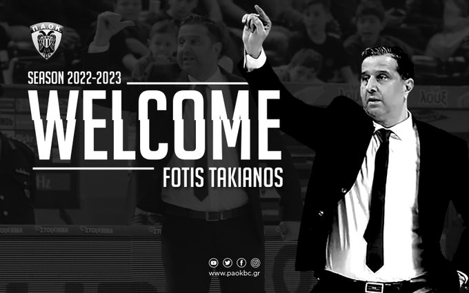 Η ΚΑΕ ΠΑΟΚ mateco ανακοινώνει τη συμφωνία με τον προπονητή Φώτη Τακιανό, ο οποίος αναλαμβάνει την τεχνική ηγεσία της ομάδας μας ως το τέλος της σεζόν 2023-24.