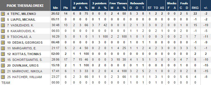 Το παιχνιδι δεν το ειδα και δεν εχω αποψη παρα μονο απο τα στατιστικα.
